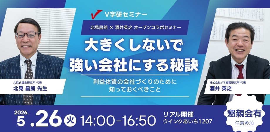 北見式賃金研究所の北見昌朗先生とのコラボセミナーご案内「大きくしないで強い会社にする秘訣」新着!!